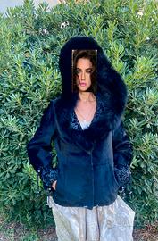Vendo preziosa bellia Giacca in Pelliccia di Canguro (simile visone rasato) con ampio cappuccio bordato di vero pelo di Volpe. Lavorazione al laser all interno dell cappuccio e sulla manica.