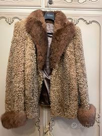 Vendesi pelliccia di agnellino con collo e risvolti alle maniche in pelliccia di visone.