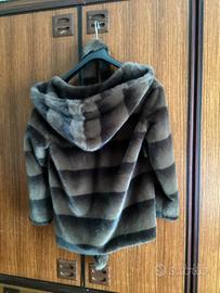 Giacca in pelliccia sintetica marrone con cappuccio, cinta e bottoni a pressione nascosti. Tg44/46, mai indossata per errore taglia personale.