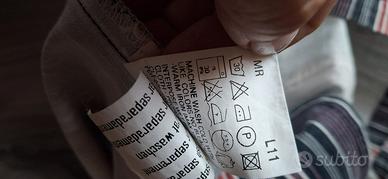 Giacca cotone sfoderata , leggermente elasticizzata con motivo a righe colori rosso blu bianco. Taglia 17 equivale alla 46 italiana