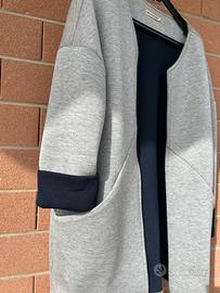 Comoda giacca color grigio con tasche e maniche a tre quarti con rivestimento interno e rovescina blu , comodo , taglia unica, ottimo capo indossato pochissimo .