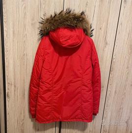 Giubbotto rosso imbottito con cappuccio in pelliccia, caldo e super stiloso ❤️ Perfetto per l’inverno, tiene al caldo senza rinunciare al look. Chiusura con bottoni e zip, 4 comode tasche con chiusura con bottone. Colore vivace che non passa inosservato! In ottime condizioni, pronto da indossare.