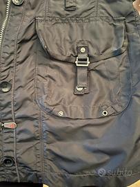 🔹 Dettagli: chiusura con zip e bottoni, cintura regolabile con fibbia, tasche frontali con patta, logo Peuterey sulla manica.