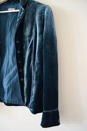 Giacca corta Philosophy di Alberta Ferretti in rayon e seta turchese/blu di Prussia. Linea avvitata. Chiusura frontale monopetto con cinque bottoni a clip. Made in Italy.