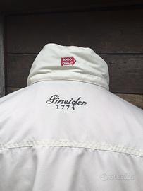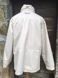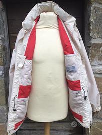 Taglia M ,nuova con cappuccio interno il collo,si chiude con cerniera e bottoni a scatto. Marco PINEIDER,inserito anche un cordoncino in vita per stringere. Molto bella e buona vestibilitá.