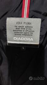 Giacca Diadora imbottita con vera piuma d'oca. se fa freddo, tiene molto caldo. cappuccio removibile. Taglia L veste comoda.
