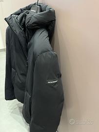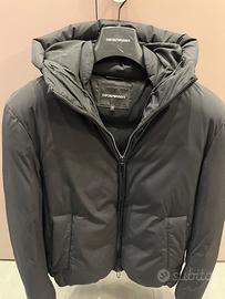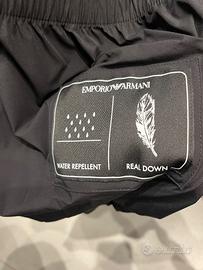 Bellissimo e caldissimo Piumino Emporio Armani con cappuccio nero, taglia 54 come una XL, impermeabile e imbottito di morbida piuma d'oca, due tasche esterne e due interne grandi, assolutamente come nuovo. Per info contattatemi