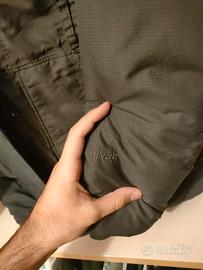 La giacca è realizzata con la tecnologia Hyvent di The North Face, che la rende impermeabile e traspirante. L'imbottitura interna, in piumino d'oca (come mostrato nella foto 7) assicura un'ottima protezione dal freddo. Presenta un cappuccio regolabile e diverse tasche esterne e interne.