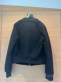 Giacca nera 100% poliestere. Petto e schiena in tessuto, maniche simil teddy. Abercrombie & Fitch Taglia L (vestibilità piccola)