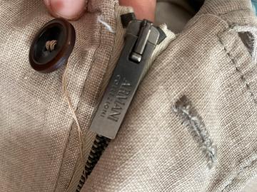 Chiusura con cerniera marcata Armani e bottoni sovrapposti. Pari al nuovo