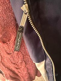 Giacca primaverile unisex in tessuto tecnico blu navy, perfetta per la mezza stagione. Design moderno con collo alto e chiusura a zip e bottoni a pressione. Cappuccio a scomparsa all'interno del collo. Collo interno in velluto blu. Tasche laterali con cerniera di chiusura Interno morbido e confortevole, ottima vestibilità. Indossata pochissimo, in condizioni eccellenti. Ideale per look casual o raffinati, abbinata a jeans o pantaloni chiari. Taglia: M altezza 150 cm (12-14 anni) Colore: Blu navy