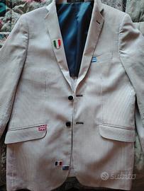 Vendesi per inutilizzo giacca usata poche volte never mind a righe taglia 50 con le bandierine sarebbe da rinfrescare qualche macchiolina c'è ma si vede poco se interessati scrivetemi o spedisco, vendo a prezzo simbolico