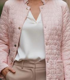 Giacca trapuntata Diana Gallesi - Rosa Cipria - Taglia 44 Vendo splendida giacca leggera trapuntata firmata Diana Gallesi, color rosa cipria/pesca molto delicato. Il capo presenta una particolare lavorazione a nido d'ape (esagonale) che lo rende elegante e originale. Condizioni: Ottime, come nuova. Senza segni di usura. Dettagli: Chiusura con bottoni a pressione logati, collo alla coreana e due tasche frontali. Materiale: 100% Poliammide (Nylon), ideale per la mezza stagione (primavera/autunno). Taglia: IT 44 (corrisponde a una M. Misure prese in piano: Seno (ascella-ascella): 49 cm Vita: 44 cm Spalle: 40 cm Lunghezza totale: 60 cm Capo molto versatile, perfetto sia su un look casual che sopra un abito. #DianaGallesi #GiaccaDonna #GiaccaPrimaverile #RosaCipria #Trapuntino #Taglia44 #ModaDonna #SecondHand #ElegantStyle #QuiltedJacket #MidSeasonJacket