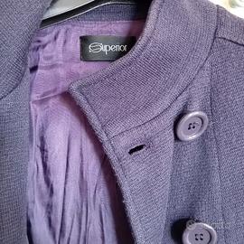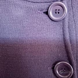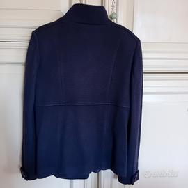 elegante giacca strutturata in tessuto di maglia, completamente foderata, 70% acrilico e 30% lana. Vestibilità fluida, dalla linea leggermente svasata che scende senza segnare. due tasche laterali , bottone di ricambio .Colore prugna. Buonissime condizioni ma trattandosi di maglia la trama rivela piccolissimi pallini .
