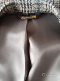 Giacca usata pochissimo e ancora in ottimo stato in pura lana vergine, cucita artigianalmente come si evince dalle targhette nelle foto. Come taglia è una L.