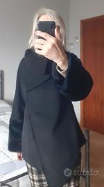 Giacca con collo ad anello in stoffa di lana morbidissima e polsi in ecopelliccia. Rifiniture accurate