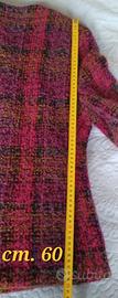 Giacca in tessuto tipo Chanel, bellissime sfumature di rosa e viola, sartoriale, made in Italy, foderata, bottoni gioiello, taglia 42 M.