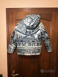 Giacca reversibile di colore verde, taglia S, da bambino, ottima per restare a caldo, molto bella esteticamente da vedere e soprattutto molto comoda ci sono due tasche impermeabili i polsini sono provvisti di elastici. La vita si può regolare con gli elastici e il cappuccio si può regolare con gli elastici.