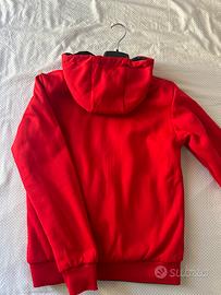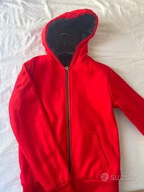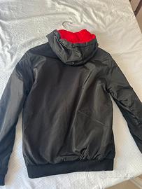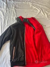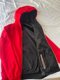 Vendo giacchetto reversibile: da un lato è nero, in tessuto liscio tipo impermeabile, perfetto per la pioggia; dall’altro lato è rosso, in tessuto felpato caldo e morbido.