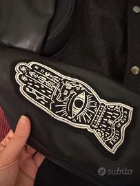 maniche in vera pelle nera e parte in pura lana.