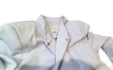 Giacca Rinascimento linea Chic Couture, taglia S, color ceruleo, con manica a ¾ e chiusura a colletto.