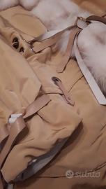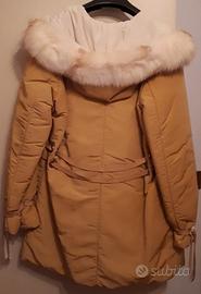 Giacca imbottita Robrik made in Italy, double face, esterno color senape chiaro, interno panna, con risvolti in volpe artica.