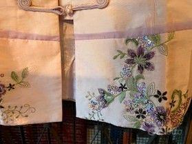 Giacca cinese originale in seta di colore rosa. Rifinita nel bordo inferiore con ricami floreali. Taglia L (ma veste piccolo), altezza cm 55, spalla cm 38, petto cm 46. Finitura accurata.