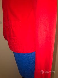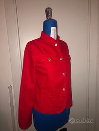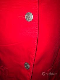 Giacca rossa strutturata in Denim di Benetton. Presenza di pence sui fianchi che valorizzano la silhouette. Giacca struttrata in denim di cotone. Non elasticizzato. Presenza di bottoni e tasche. Taglia: xs