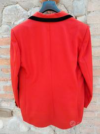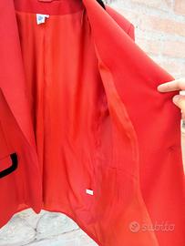 Vendo giacca di pura lana vergine color rosso con dettagli neri, da donna taglia 46, veste grande. fodera in acetato e viscosa. Elegante, usata in buono stato. Disponibile per la spedizione.
