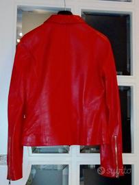 Giacca rossa in vera pelle, lavorazione artigiana. Taglia 40, doppia cerniera, taschini laterali più una tasca interna. Cerniera sulle maniche per regolare vestibilità polsi. Made in Italy. Realizzata su misura