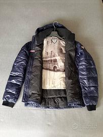 Taglia XL, colore blue, con polsini e collo in lana, colore nero. Con cappuccio e lacci per regolarlo. 2 tasche esterne con cerniera. 1 tasca interna con cerniera. Marca Rossignol. 80 % piumino, 20 % piuma. Chiusura con zip bidirezionale. Tenuto molto bene. Valore commerciale 280 euro. Vendo causa inutilizzo a 30 euro.