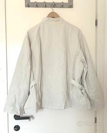 Vendo giacca capospalla color burro, chiusura con automatici e cerniera, 2 tasche a filetto, cinturini regolabili sul punto vita. Nuovo, mai indossato, cartellinato. Taglia XXL lunghezza spalla/fondo 70 centimetri, materiale del tessuto esterno 62% cotone e 38% poliammide, materiale della fodera acetato e viscosa.