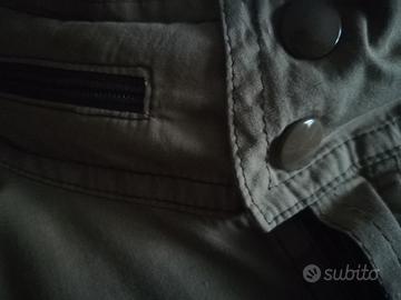 TEMPO Sahariana verde vintage, taglia M, cotone leggero verde, collo completo di cappuccio a scomparsa con cerniera richiudibile, un taschino alto e due tasche sul fondo complete di aletta a chiusura con bottoni automatici come i polsini, chiusura centrale giacca con cerniera in tinta. Regolabile in vita con laccetti completi di fibbie strozza laccio in metallo