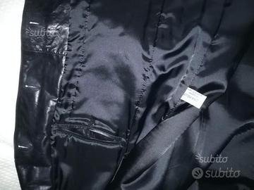 100% Pelle bovina, fiore. Prodotto artigianale su misura da laboratorio con fornitura pelle certificata. Tinta unita nera, monopetto, 4 bottoni, 4