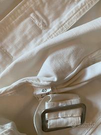 Giacca sahariana in puro cotond bianca con tasche, cintura in vita e piccola cerniera melle maniche. Taglia 40. Indossata pochisdime comte.