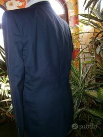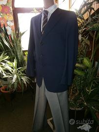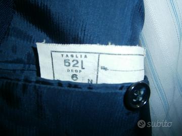 La giacca blu ,per abito spezzato da uomo è di produzione sartoriale torinese degli anni '60 con tre bottoni , forse in fresco di lana ,ma non c'è la composizione .Taglia 52 L DROP 6