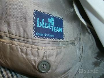 Giacca sartoriale a quadretti :nero ,grigio,verde con riga arancione.BLUE TEAM,Iin pura lana vergine WOLLTON CLOTH .
