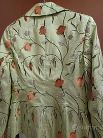 giacca sartoriale in tessuto di alta qualità In raso tutta ricamata Colore verdino tg 42 perfetta per occasioni speciali, ma anche con il jeans in perfette condizioni perché portato pochissimo tempo, praticamente nuovo