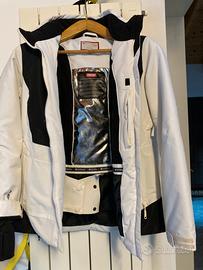 Giacca da sci donna ,marca inglese Mountainearehouse , sistema recco 1 tasca interna con cerniera, 1 interna in rete , tasca su manica sinistra con cerniera per skipassa, fascia in vita xon due possibili chiusure, polsino elastico con foro per pollice , cappuccio rimovibile con cerniera. Per la taglia vedi etichetta
