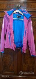 Giacca sci donna tg 44 in Primaloft caldo, interno con.gonnellino apertura ascellare, cappuccio e doppio colletto rimovibili. Ben tenuta.