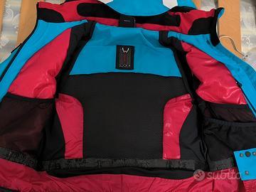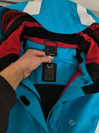 - Dettagli bianchi e rossi sulle maniche e sul davanti.