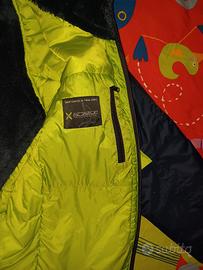 Giacca invernale da sci o abbigliamento Originale Monterà verde-blu impermeabile con morbido interno peloso, cappuccio autoreggente, 2 tasche esterne e una interna.