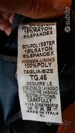 Vendesi giacca nuova tg.46 blu scuro bellissima a stoffa scozzese con filo bottoni rosso che la rendono molto chic