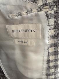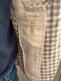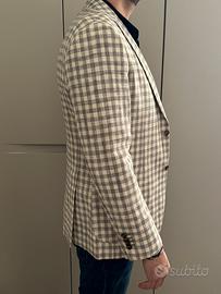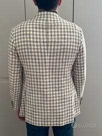 Bellissima Giacca/Blazer Uomo Suitsupply a quadretti grigio e crema, taglia 52. Il tessuto è una miscela pregiata di lino e seta. Si tratta di un prodotto usato poche volte, senza nessun difetto e perfettamente conservato.
