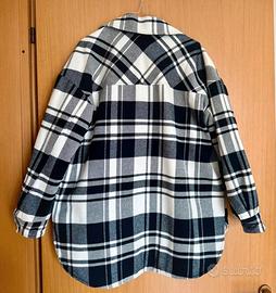 Stupendo giubbino/shacket (shirt jacket) in fantasia scozzese bianca e nera.