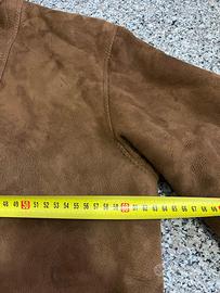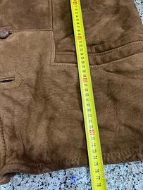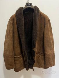 Giacca shearling originale in vera pelle scamosciata color marrone, con interno in montone naturale molto caldo.