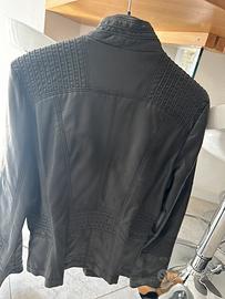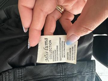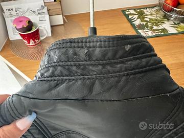 Come da titolo giacca in ecopelle morbidissima con dettagli in oro. Perfetta tranne un po’ di ecopelle rovinata sul collo dietro come da foto . Taglia L ma veste massimo una 44. Modello avvitato