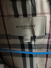 Giacca in piumino nero con interno scozzese tipico del brand Burberry con collo in pelliccia di coniglio