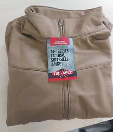 Nuova con cartellino taglia M - 48/50. La giacca softshell tattica 24-7 Series è realizzata per essere comoda da indossare sopra un'arma da fuoco con fondina o un gilet antiproiettile, ed è realizzata in tessuto di poliestere, che la rende leggera e impermeabile. Due tasche posteriori con cerniera e due tasche angolari in vita offrono ampi spazio. L'imbottitura interna mantiene il corpo caldo e asciutto senza appesantire.