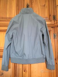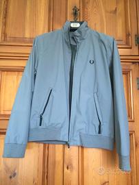 Giacca sportiva originale Fred Perry, completamente foderata in twill di nylon, colore grigio chiaro, taglia M. La giacca è usata ma ben tenuta come documentano le foto